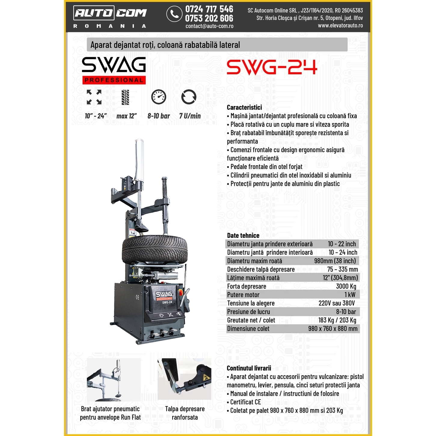 Etichete: Masina dejantat roti cu brat anvelope run-flat, Aparat dejantat profesional cu brat anvelope run-flat, SWAG, SWG-24