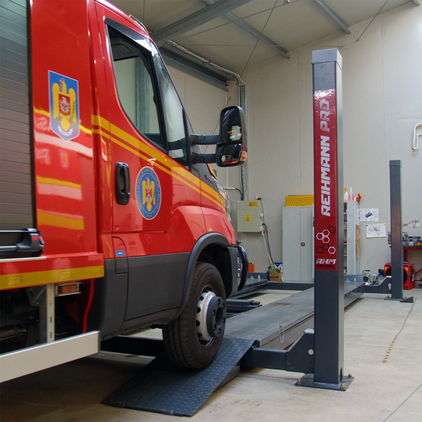 Elevator auto 4 coloane pentru mecanica si intretinere auto de la REIHMANN RHM 4.70 capacitate ridicare 7000Kg